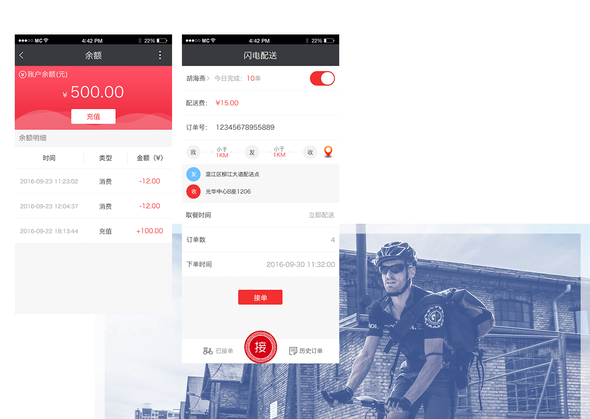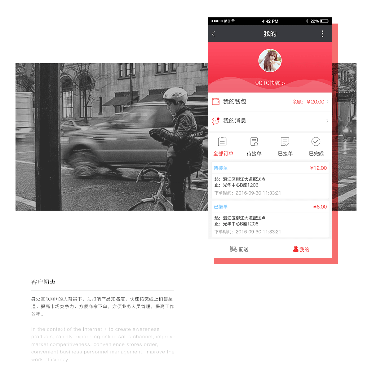 快一点配送项目,主要针对的客户群体是餐厅,餐厅通过微信进行下单选择配送时间,后台可以查看到离餐厅最近的配送员手动分配就近的配送人员,配送员通过app进行接单。