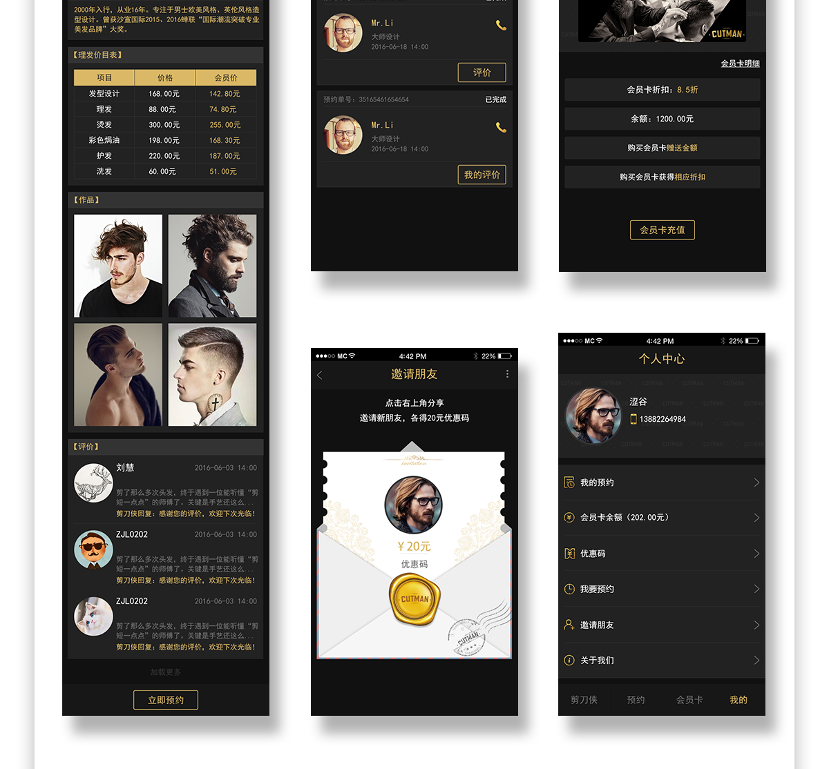 打开该公众号,进入预约,系统根据定位自动推送附近门店,点击门店可以查看门店介绍及理发师介绍,点击预约可以查看到理发师服务案例、用户评价,让用户快速了解理发师擅长发型和服务价格,点击预约选择时间段,展示效果中可以看到哪些时段已经被预约,哪些时段可以预约,选择一个自己空余的时间段就可以预约成功,预约成功会收到系统推送的消息,如果没有时间享受可以及时取消,同时在微信中也用到了好友推广这个功能,通过个人中心分享的优惠码给好友,不仅好友可以享受优惠,在好友使用优惠码之后自己也可以享受优惠,当然了,会员储值这个功能也在系统中被运用,帮助剪刀侠吸引了很多忠实用户。