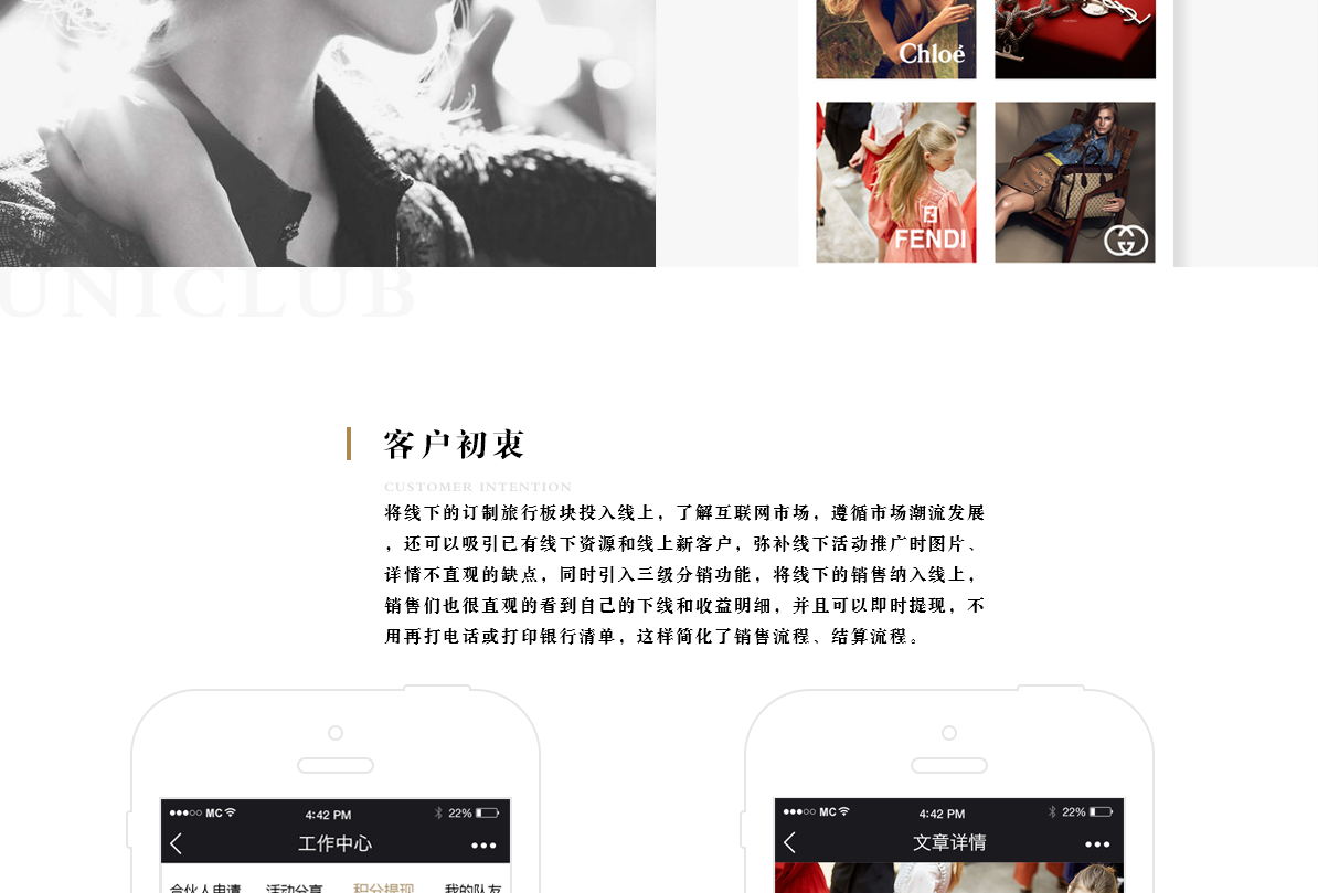 本平台专注高端线下订制旅行、美食专栏线上发布与预约,专做线下的活动发布和预约,可以根据预约用户进入预约页面的时间判断供这个用户选择可预约的日期段和时间段让用户选择,用户预约后可以评价,其他用户也可以看到。另外将线下的销售转到线上做三级分销,销售分享后台推送的文章或者是活动详情给朋友,朋友注册后就成为该销售下线,用户付费消费时销售可以获得后台设置比例的提成,同时用户也有三级分销,他们也可以分享活动详情页面给朋友,朋友消费后他也可以获得提成,销售的提成可以申请提现,用户的提成可以兑换后台发布的礼品。