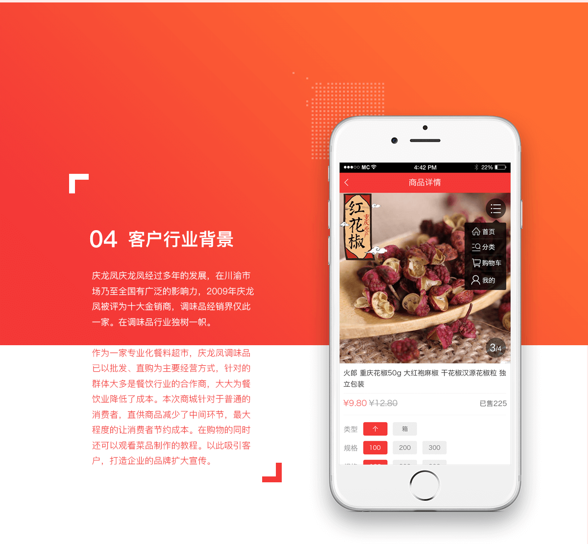 该餐料量贩是一家以批发、直购为主要经营方式的餐料用品营销公司。公司拥有强大的销售团队和标准的服务,其产品价格优惠,品种齐全,用户可在商城内选择品种多样的调味品,还可以查看相关的厨艺视频,为客户提供 “多、快、好、省” 一站式购齐的专业服务,在目前优势组合的基础上, 逐步推出庆龙凤餐料量贩网上超市的销售方式。