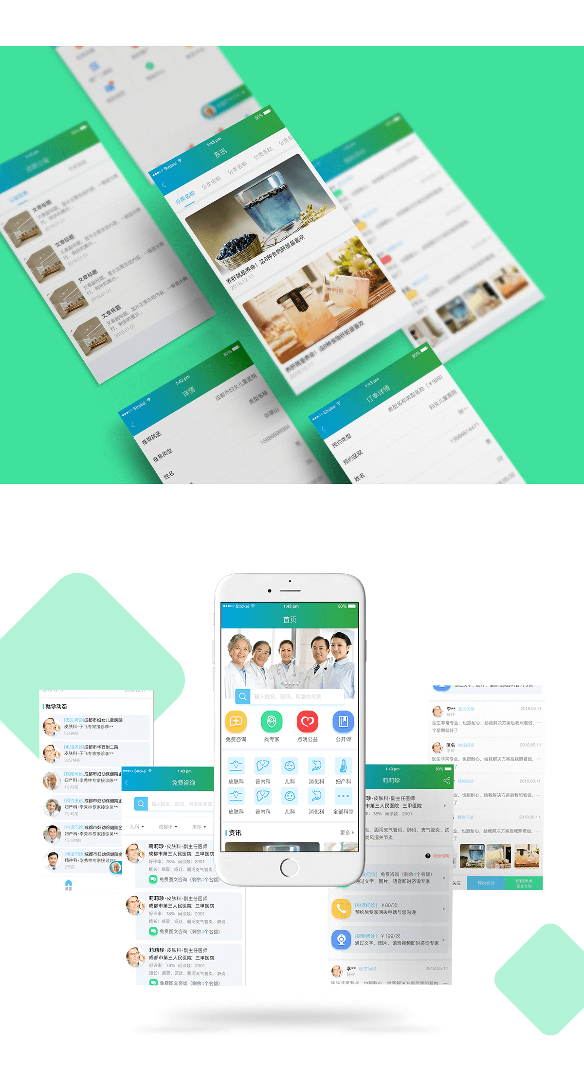 大众可以在本平台找每个当地医院的各种类型的专家咨询健康问题,包括电话咨询、图文咨询、视频咨询,同时可以购买健康课程视频,使用本平台的用户、医生、专家都有分销功能。