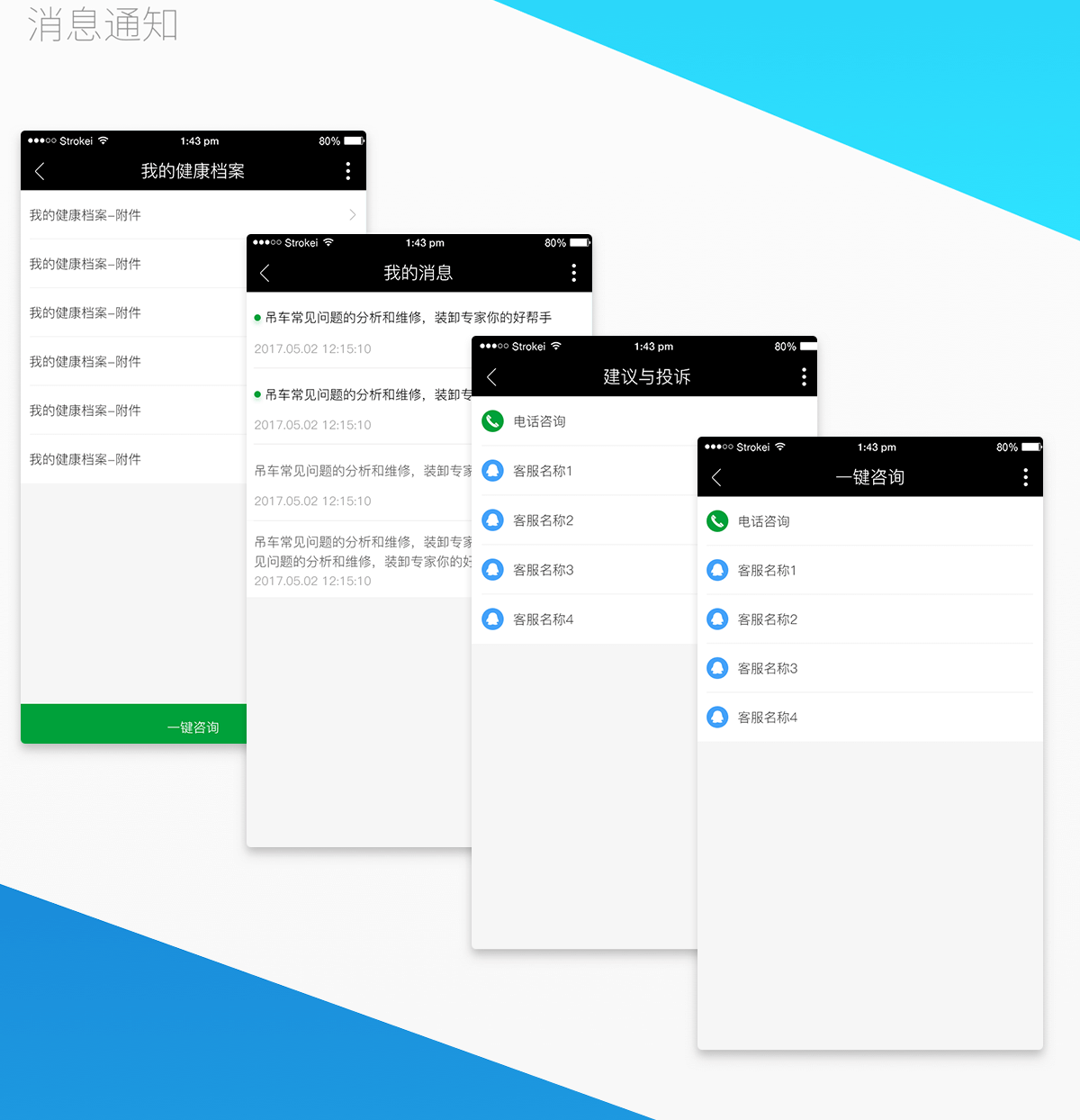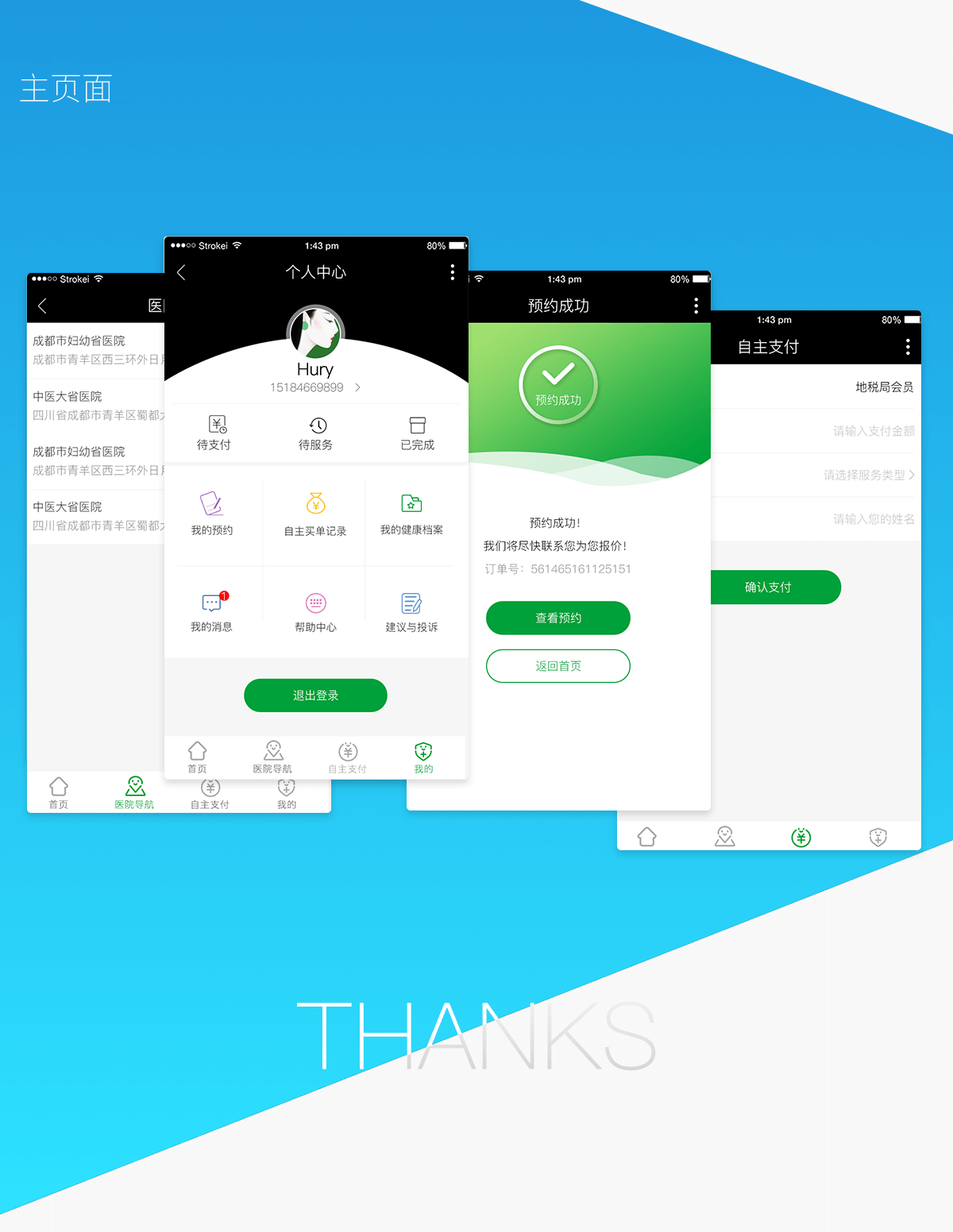 用户微信端:预约服务,填写资料,付款,体验线下服务;管理自己健康档案、医疗咨询。
