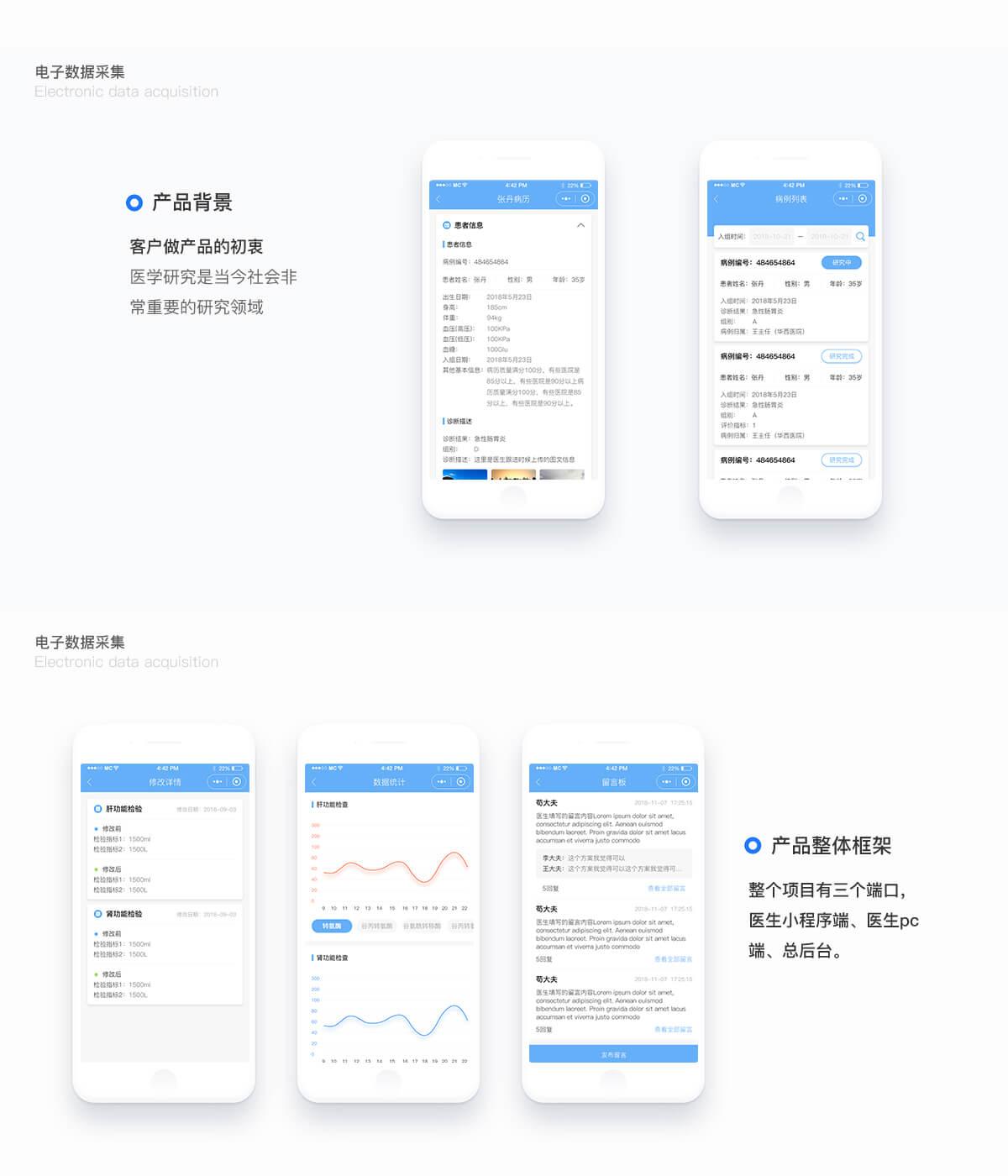 医生在小程序端可以查看项目病例的检查数据的变化情况,也可以查看整个项目总体的病例数据。