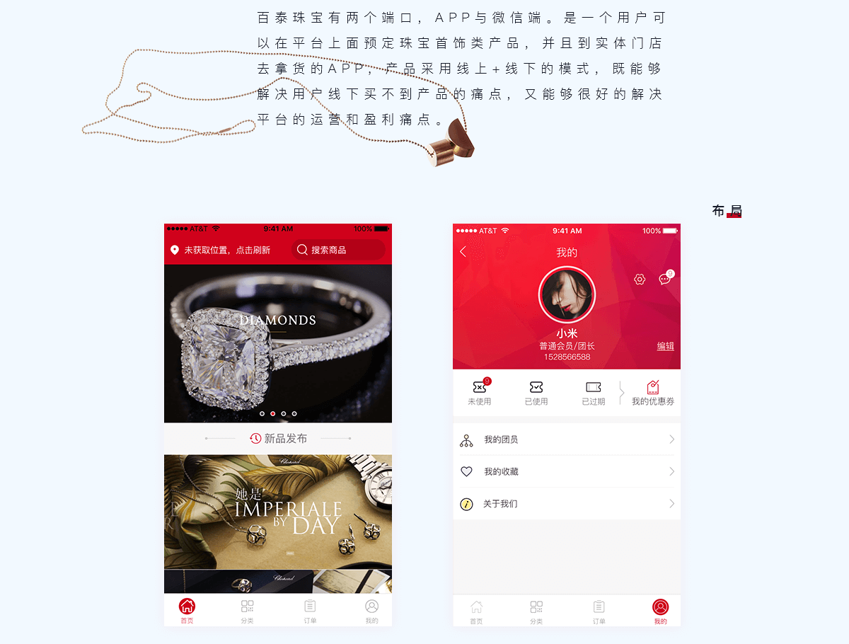 成都珠宝线上APP有两个端口,app与微信端。是一个用户可以在平台上面预定珠宝首饰类产品,并且到实体门店去拿货的app,产品采用线上+线下的模式,既能够解决用户线下买不到产品的痛点,又能够很好的解决平台的运营和盈利痛点。