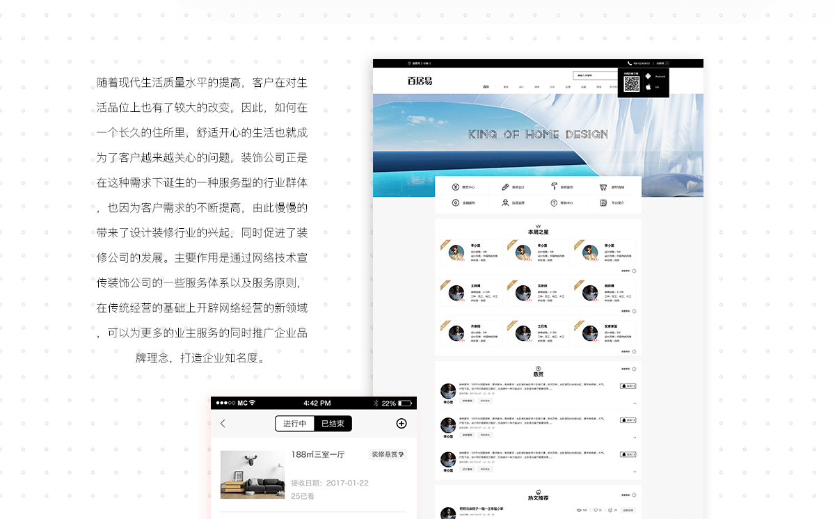 本家居建材网站是一个颠覆传统家装格局的360度装修建材一站式共享服务搓合网站,网站功能包括家装设计服务、装修施工服务、装修监理服务和家居建材商城。让每位有装修需求或经历的客户,可以在平台内分享装修心得,是联系设计师、装修公司、装修工人的桥梁。同时在平台成交的用户可以获得相应积分,装修款项在客户确认满意,转款给设计师或装修公司,这样大大降低了网络装修的风险,带给用户便捷高效的服务。