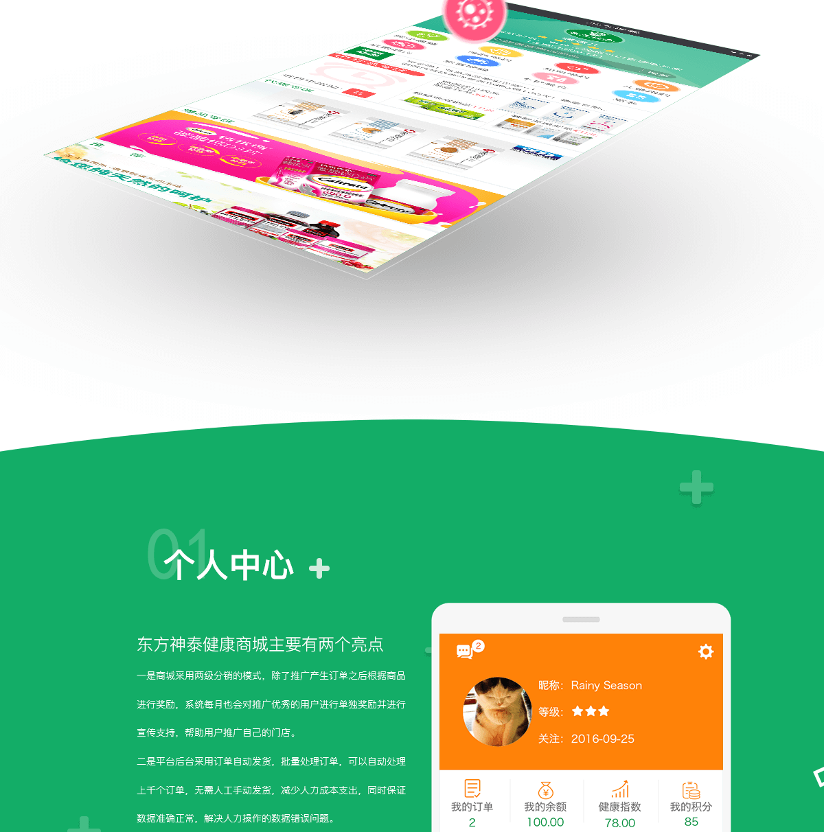 成都公众号健康商城主要有两个亮点:一是商城采用两级分销的模式,除了推广产生订单之后根据商品进行奖励,系统每月也会对推广优秀的用户进行单独奖励并进行宣传支持,帮助用户推广自己的门店;二是平台后台采用订单自动发货,批量处理订单,可以自动处理上千个订单,无需人工手动发货,减少人力成本支出,同时保证数据准确正常,解决人力操作的数据错误问题。