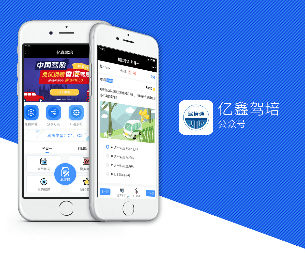 亿鑫驾培公众号是一款答题产品。向正在考驾照的群体销售驾考科目一、科目四的题目。在销售题目的基础上,建立完整的分销体系。通过各个级别的代理商,将这套系统分销出去,学员在系统中购买题库后为平台中的各个角色提供收益。