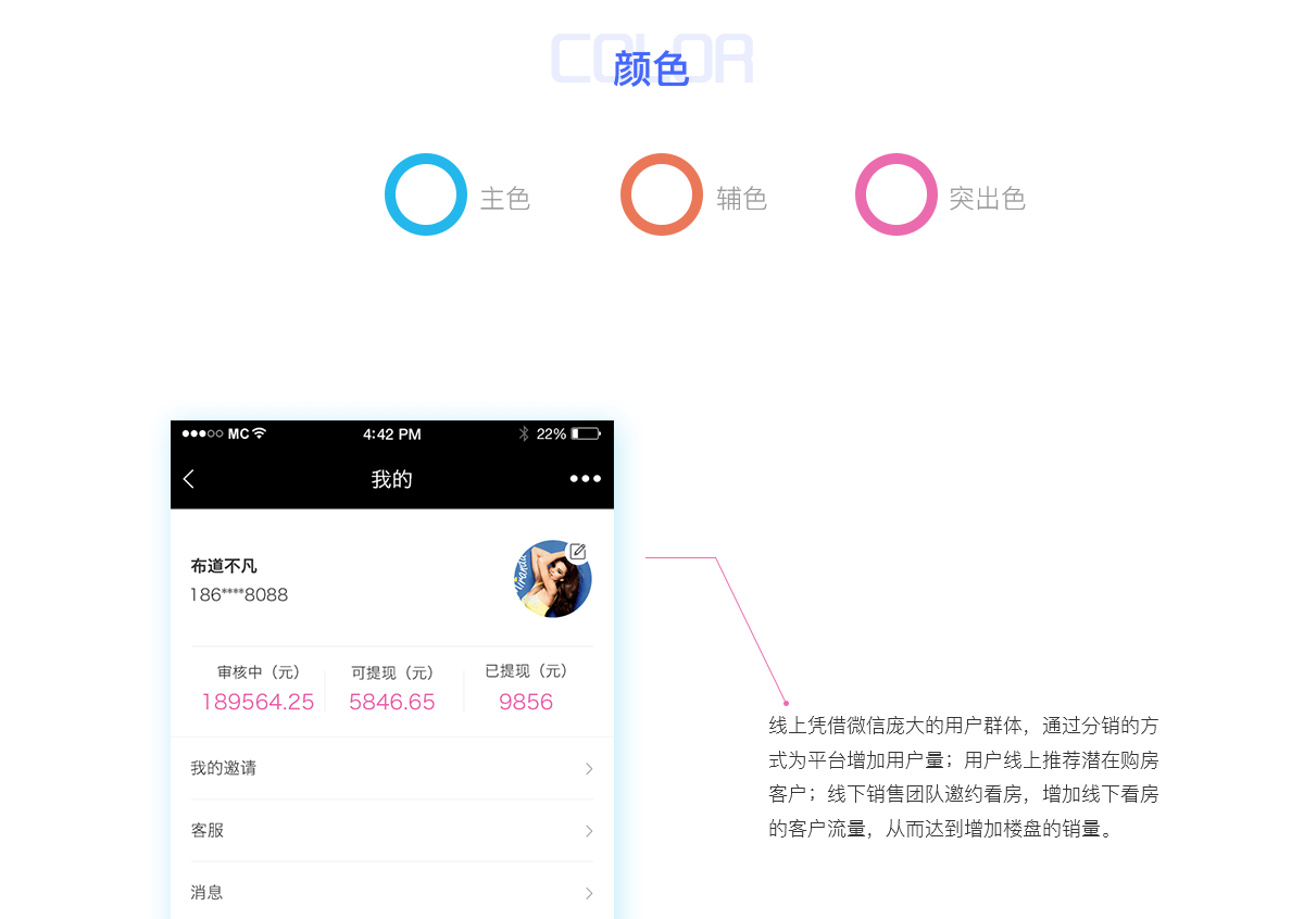 百维房产经纪人项目;通过线上分销的方式为线下的房产楼盘拉取客户流量。同时帮助手里有购房客户群体,本身又非房产经纪人行业的用户提供一个兼职赚取佣金的平台。