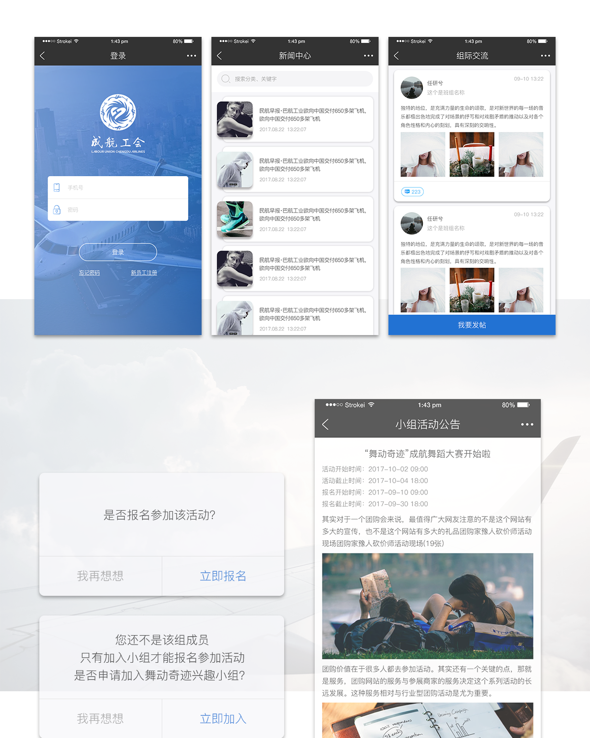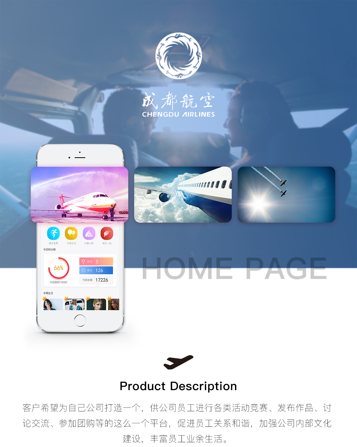 一款针对成都航空工会定制的微信服务号,主要用于增加工会员工间的凝聚力